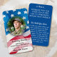 Premium USA American Flagga Memorial Funeral Prayer Card. Detta militära minneskort för böner har en amerikansk Flagga i modern utformning. Front "In Loving Memory" Personalisera det här militärbegravningskortet med dina kära foto, namn & data och känslor. Front "In Loving Memory" "Heroes Live Forever". Anpassa det här militära begravningskortet med dina kära foto, namn & data och känslor. Bakåtcitat: "En Hero är...En person som har gett sitt liv till något underbarare än sig själv och bön "Vi håller er nära". ... om du vill ha en design med en specifik dikt annan än dig själv. Detta amerikanska bönkort är en välkänd keepé, hedra en fallit soldat, militärbegravningstjänster och veteranminnesgudstjänst eller firande i livet. I Loving Memory Military Memorial American Flagga Prayer Cards. COPYRIGHT © 2020 Judy Burrows, Black Hund Art - Med alla Höger reserverade. Memorial Military Fallen Soldier Prayer Card