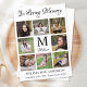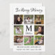 Elegant Beklagar. De här sympatikorten innehåller en elegant fotokollage för åtta av dina favoritfoton, inledande mongram och namn, en hjärtfull citattecken "In Loving Memory" på modern svart design. Dessa minneskort är perfekter för begravning av tackkort eller firande av livets tackkort. Anpassa dig med ditt tack, namn och data. ...COPYRIGHT © 2020 Judy Burrows, Black Hund Art - Med alla Höger reserverade. Memorial Modern Photo Colleral - tack för ditt kort