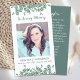 Modern eukalyptus Sympathy Funeral Prayer Cards. Minnet av ditt kära med vårt vackert designade minneskort. Perfekt för begravningar, minnesmärken och firande i livet, detta kort är en hjärtefråga för familj och vänner. Personlig Design: Lägg till ett omhuldat foto av din älskade för att skapa en verklig personlig. meningsfull Dikt: Välj bland ett urval av hjärtliga poeter som fångar kärnan i din älskades själ och arv. Skapa ett bestående minne som firar ditt älskade liv och arv med detta smakfulla och sentimentala bönekort.