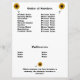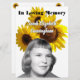 Ett minnesprogram har gulten solblommor som bakgrund. Ett foto av den avlidne som har bakgrunden borttagen visas i det nedre hörnet av högerna. Klicka på "Redigera den här designen" om du vill söka efter alternativet att ta bort bakgrunden från den älskade personens foto. Ord, "In Loving Memory", och den avlidnes namn står på framsidan. På baksidan står "Order of Services" och "Pallbearers" namn med tre små solrosfoton. Citatet "När någon du kärlek blir ett minne blir minnet en skatt" visas grund på baksidan. All text och alla foton ställs in som mallar för att vara personlig. Kontakta mig i Chattan om du behöver hjälp med att anpassa dig.
