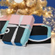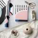Memphis abstrakt poster design. Ansikte-geometrin får dig att le. Blått, rosa, svart och vitt. 80-talet och 90-talet stil.