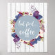 Men första kaffet, Blommor, Blå, Rustic, Wood poster 8" x10"