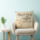 Kaffeförälskare och tupplur entusiaster förena sig! Denna latte beige kudde med espressobrun text läser "Men först, kaffe (och en tupplur)." Perfekt humoristisk present för kaffeberoende som också älskar sin sömn. Idealisk sovrum, läsinredning eller kaffebar dekoration. Mysig färgpalett kompletterar alla inredningar medan den lägger till personlighet och charm till din avkopplingsplats.