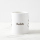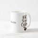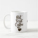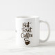 För morgonkaffet. Text: Men första kaffe. Anpassa och lägg till ditt namn. Brun text, handskript.