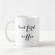 Tyck om ditt kaffe i denna gulliga mugg som något att säga i cursive, "men först, kaffe.",
