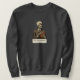 A men’s black crewneck sweatshirt featuring a vintage-style skeleton illustration holding a book, paired with a small text label beneath, evoking dark academic humor and a quiet appreciation for anatomical art, literature, and irony that resonates with those who recognize the aesthetic without needing to explain it, available through the store link below.