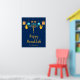 Hanukkah party welcome sign with a menorah and sufganiyots. The words can be changed to suit your own details or requirements