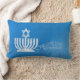 21-tums x 13-tums ländrygg dekorativ kudde med en blek blå och vit menorah överdragen med David stjärna på blå grunge. Blått grunge tillbaka. Se matchande 12-tums x 16-tums accentkudde. Se hela Hanukkah Pillow-samlingen under HEMMA-kategorin i avsnittet HELGDAGAR.