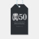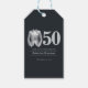 Celebrate a milestone in timeless style with this elegant 50th birthday Thank You favor tag. Featuring a luxurious black background and a bold silver tuxedo graphic, the design pairs classic sophistication with modern simplicity. The striking “50” detail sets the tone for a refined evening, while party information is displayed in a graceful serif font for a polished finish. Perfect for a formal birthday celebration, black-tie event, or upscale soirée.