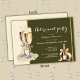 Make his retirement party unforgettable with this stylish and festive invitation design! With a sophisticated two-tone cream olive green layout, the left side features a rich cream shade adorned with golden glitters, watercolor champagne glasses, and a bottle that sets the scene for a bubbly celebration. The scripted “Retirement party” adds a touch of glamour and excitement across the card. On the right, green background offers room for all your personalized party details in a classy script and serif font pairing. The back design continues the elegant theme with a lighter pink base and shimmering glitter details.