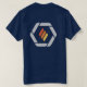 company logo on pocket area on front, flame logo on back