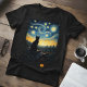 Men's Starry Night Black Cat & Swirling Sky T Shirt