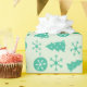 "Menthol Grönt Julgran och Ornaments Festive Wrapping Papper" har en klar turkos Julgranar med dekorationer och snöflingor, perfekt för en unik och glatt helgdag.