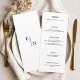 Öka din bröllopsmottagning med det här moderna minimalistiska menykortet med elegant serif och sans-serif typografi. Med sin rena linjer, rymliga layout och svartvit design utan tidpunkter tillför detta kort en sofistikerad beröring till tabellutrymningen. Perfekt för högtidliga middagar, modernt firande eller svart bröllop. Anpassa med egna menyval, teckensnitt stilar och valfritt monogram eller bröllop-datum längst upp. En del av en matchande minimalistisk svit med inbjudningar, OSA kort, skyltning med mera.