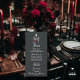 Bröllop Menu | Skrivna på Gamla engelska Gothic calligraphy - den här gode bröllop-middagsmenyn kommer säkert att wow den folkvita texten på träkolbakgrund med en bedövande gutisk Victorian Candle-visning med ro