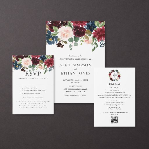 Rustic Burgundy Navy Blue Floral WeddingDesignad av Bruno Crispin