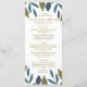 Dessa menykort är perfekt för alla par som planerar ett trendig i det moderna bröllop firande. Utformningen har snyggt hand plockade foliage löv i blå och grönt på en ren vit bakgrund och är avslutat med enkel att redigera ordalydelsen. Den enkla designen kan vara personlig till kostym för din speciella händelse och kommer att vara menyn perfekt för alla blommigtar som kallas party, inklusive: möhippor, förlovningar, möhippor, födelsedagsfester och mycket mer.