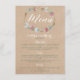 De här menyerna är perfekt för alla par som planerar ett romantiskt landsbyggsbröllop firande. Utformningen har en trendig av vilda blomkrans på en kraftverksbakgrund med en samordnad ordalydelse från färg. Den enkla designen kan vara personlig till kostym för din speciella händelse och kommer att vara menyn perfekt för alla blommigtar som heter party, inklusive: möhippor, chic, förlovningar, möhippor och mycket, mycket mer.