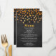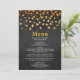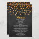 Den här roustiska och grumliga bröllop-menyn har guld löv på en svart bakgrund med träkol. Texten kombinerar kursiv och serif typsnitt för ett modernt och snyggt utseende. Detta kommer att bli perfekt för höstens fall.