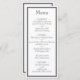 Berätta för dina gäster vad som finns på menyn för ditt bröllopsmottagande med hjälp av den moderna Gräns-minimalistiska svarta vita bröllop-temamenyn.