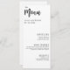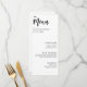 Vi presenterar det enkelsidiga menykortet frÄn Elegance Collection - ett smakfullt och koncist sÀtt att presentera dina löstagbara erbjudanden i firande. Det hÀr kortet, designat i eleganten stil i samlingen, ger en blixtlÄs över de kulinariska glÀdjeÀmnen som dina gÀster kan förutse. Det enkelsidiga formatet Àr försett med rent linjer och modern estetik, vilket skapar en synlig presentation. Menykategorierna - Appetizers, Main Kurser, Desserts och Drinks - visas elegant och lovar en kulinarisk upplevelse som Àr lika förfinad som kÀrlek. Inom varje kategori kan de specifika erbjudandena beskrivas i en anpassade. Se till att varje detalj i presentationen Äterspeglar firande skönhet och individualitet. Som en del av Elegance Collection Àr det hÀr ensidiga menykortet helt anpassade att harmonisera med ditt övergripande bröllop-tema och skapa ett sammanhÀngande och elegant estetiskt som anger tonen för din matupplevelse. Det enkelsidiga menykortet frÄn Elegance Collection ger en glimt in i den kulinariska resa som vÀntar dina gÀster. Det Àr en utökning av firande finess, vilket garanterar att varje detalj, inklusive menyn, Àr genomtÀnkt designad för att förbÀttra den övergripande upplevelsen