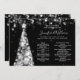 Menu-programmallen elegant & Festive Julafton Träd Silver Bröllop, med program- och menytext för party, glitter ljus Julgran och modernt typografiskt skript.