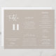 Gör detta pappra lakan till en modern neutralt taupe bröllop trefaldig meny, bordsnummer och program med information om tidslinjen, sak som är bra att veta, mat och pub. Band bara, och häll på säcken på baksidan och använda det här moderna bröllop-stationeringsprogrammet för din bröllopsmottagning. Bakgrunden till färg kan ändras i designen verktyg om du vill!