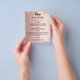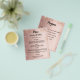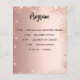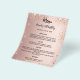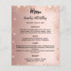 Observera att den här menyn och det här programmet är pappert och mycket tunt. För tjockare menyer/program (samma design), besök vår butik. Färggradientbakgrund för ro guld. Svart text. Dekorerad med faux-gnistor. Framsida: Anpassa och lägg till ditt namn, datum och menyn. Tillbaka: Program. Om du har ett stort program kan du minska radavståndet.