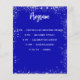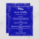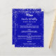 Royalets blå bakgrund. Vit text. Dekorerad med faux silver glitter, gnistor. Framsida: Anpassa och lägg till ditt namn, datum och menyn. Tillbaka: Program. Om du har ett stort program kan du minska radavståndet. 1 lakan = 1 meny utskriven kant till kant.