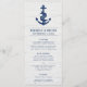 Ett marint blåankare på ett benvitt trä som bakgrund. Ett menyfliksområde på ankaret visar "meny". All text kan enkelt anpassas. Perfekt för ett nautiskt temat bröllop, särskilt om man går med rustik eller vintage.