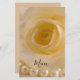 Anpassa elegant Vit ros och Pearls Bröllop Menu med detaljerna för den måltid du kommer att på din bröllop brunch, möhippa luncheon eller giftermål-middag. Den här elegantens anpassningsbar-blomningslistruta innehåller ett foto av blommigten på en blommar av blomman från vit ros med ett vitt pärlhalsband.