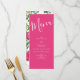 Vår lysande vattenmelonmeny rosa blommigt bröllop är gjord för att matcha vår samling av inbjudningar och dekorationer för Rosa Blommigt. Lush Grey på smart fuchsia och vit med ett vackert skript och elegant. Perfekt för en magenta sommar eller vår trädgårdsbröllop!