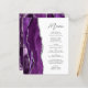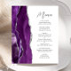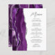 Den moderna menyn bröllop på den lämnat kant i eleganten har en lila vattenfärgsagatdesign som trimmas med faux silver glitter. Anpassadet kombinerar handskriftsskript för kol-grått och sans serif typsnitt på vit bakgrund. Lila och silver agate-konstruktionen upprepas på baksidan.