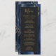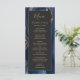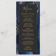 Den här eleganten har den moderna bröllop-menyn en vattenfärgsblå, blå, agate-bakgrund som trimmas med guld faux glitter. Texten visas i handstil för elegant guld färgad och typsnitt för tryckplåt på en svartvit rektangel. Den agate-designen upprepas på motsatt sida.