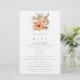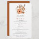 Hösten Foliage Bröllop Menu. En budgetpris storlek på 5,5 tum x 8,5 tum, En bukett med blommigtar för automatisk färgad är överst och anpassar texten nedan på ett enkelt sätt. En samordnande terracotta bruna bakgrund är på baksidan. Du kan också ändra teckensnittet stil och färg och färgen längst fram och bakåt om du vill med alternativet Klicka för att anpassa ytterligare.
