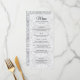 Elegant, traditionell men modern, detta menykort för bröllop kan anpassas helt och hållet till namn från Bride and Groom, bröllop-datumet och menyalternativen för bröllop-middagen till kostym. Susi Inc. Den mjuka blommigtens mönstrade bakgrund på menyn är en del av den matchande bröllop-samlingen som finns i Eleganten Traditional Photo Bröllop Suite.