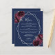 Den här elegantens moderna bröllop-meny har en silver-geometrisk ram som dekoreras med burgundi och silver blommigt buquets på marinblå bakgrund. I anpassadet kombineras silver grått med fysisk handskrift, tryckplåt och kursivt typsnitt.