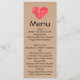 Stilfull meny för mottagande för hantverklookbröllop, med diagram av en brun hantverkpappersbakgrund och en papper mosaikhjärta, upptill. Personifiera alla text för din speciella dag. Matcha är produkter tillgängliga.
