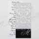Inbjudan för menyn för bröllop för den Regal silvermonogramen är den damastast fullständigt anpassadet. Utskrivavet på metalliskt papper eller slå skräddarsy knäppas och väljer din favorit.
