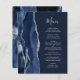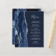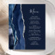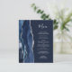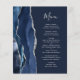 Den moderna bröllop-menyn på den lämnat kant i eleganten har en marin blå vattenfärg som ruttnar gräns med faux silver glitter. I anpassadet kombineras handskriftsskript och mönstret typsnitt i silver grått på en marin blå bakgrund. Den omvända sidan har en matchande marin blå och silver-agate-design.
