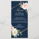 Visning din utsökta meny på dessa vackra kort - perfekt storlek till ställe på varje skylt! Den här designen har ett vackert skript-teckensnitt och vackert bouquet. Redigera enkelt matvarorna!