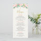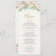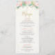 Denna flicka menyn för vattenfärgen för christening presenterar den blom- någon guld- calligraphytext för faux, en liten rosakor och en blom- ordning upptill av designen. Bakgrunden är ett benvitt vattenfärg-papper avbildar. Samma designchristeninginbjudan är tillgänglig på lagret tillsammans med andra partyobjekt. Denna flicka är den blom- menyn för vattenfärgchristeningen klar att vara personligen.