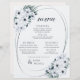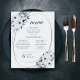 Den här vintagen för lätt och mejeriet, som är en elegant på 8,5 x 11 tum, med pappra lakan-menyer, har mörk- och mint-blommigt med teal-bokstäver på en chiffonvit bakgrund med sidhuvudet "Menu" och platshållare för två apetizrar, 2 förekomster, 2 sidor och 2 efterrätter.