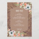 Ge din firande ett finare elegans med Fall Blommigt Bröllop Menu - en färsk, tidlös design som parar rikedomen med djupt brunt med den känsliga skönheten hos vita och korallblommor. Kontrasten är ännu slående och skapar ett utseende som känns både klassiskt och modernt. Det här menykortet är perfekt för formella bröllop, trädgårdskårar eller sofistikerade kvällsaffärer och ger en polerad beröring till varje ställe-inställning. Ren typografi säkerställer att dina kulinariella erbjudanden är lätta att läsa, medan blommigten accentuerar ram med naturcharm. En perfekt som blandar enkelhet och sofistikering, den här menyn är mer än en lista - det är ett tankeväckande uttryck för bröllop stil och anda.
