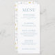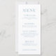 Förbättra charmen i din bröllopsmottagning med de här sofistikerade och snyggt botaniska teman-menykorten bröllop. Dekorerad med delikat ljusblått kalligrafskript och bukett som är sammanflätad med färgstarka pastellblommor och skuggblommor.