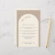 Denna moderna bröllop-meny med minimalt typsnitt är perfekt för ett modernt bröllop, minsta bröllop eller något annat firande. Den här menymallen har en sandbeige bakgrund och en båge i gräddvit. Alla inslag och färg på menykortet i bröllop kan anpassas. Finns även i kolorway Terracotta.