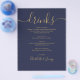 Meny för marinblåa Guld Modern skript Bröllop Drin