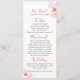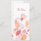 Dubbla-sidig, enkel, modern petal-konetti stil blommigt bröllop-middagsmeny på söt höst färger av djup röd nyans och orange. Designad av Sarah Trett.