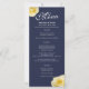 Det moderna menykortet gul ros blommigt bröllop vid midnatt // Den moderna menymallen blommigt bröllop har vackert gul ros. Bakgrunden är mörkens marinblått. Texten är i ett vitt modernt skript. Du kan enkelt anpassa all text - anpassa den med namn, bröllop-datum och menyn bröllop. Baksidan är i mörk blått färg. / Den här bröllop-menyn följer med andra objekt i samlingen Gul ros Midnight blue bröllop - du hittar det under den här menyn.