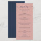 Elegant anpassningsbar navy blue och bröllop-meny med ett modernt typsnitt. Anpassa enkelt onlinen. Matchningsalternativ som är tillgängliga för att komplettera den minimalistiska menyn för marinblått och bröllop.